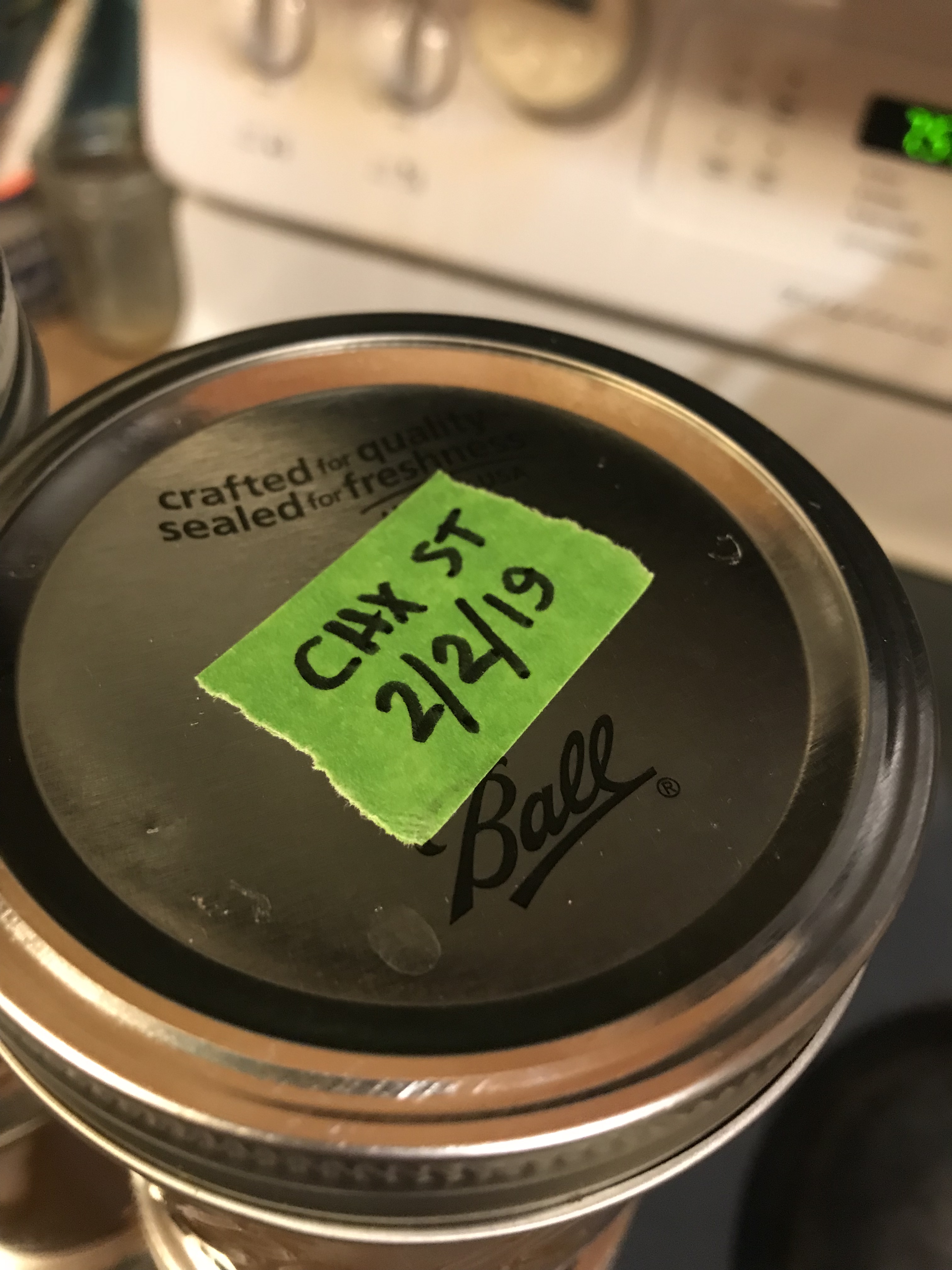 Freeze? Canning jars? Yes. Ball makes wide mouth jars that are freezer safe. The box says it right on the packaging. Of course don’t forget to wash all the pieces in hot soapy water and have them ready. There is a line clearly marked on the jar for freezer use. Liquid expands when it freezes so it is important to not overfill your jars. Having a wide mouth funnel to fill your jars is very helpful as well. Don’t forget to label those jars. I use painters tape. You know the blue or green stuff. Mark with permanent marker what it is and the date. You don’t want to be guessing when you go to use it. This way the tape peels off easy they get washed and can be reused. I try to only use lids I’ve already canned with. They are a one use lid so this is a way to recycle them and not add them to the landfill. At some point I will have to get rid of some but until then this is what we will do.